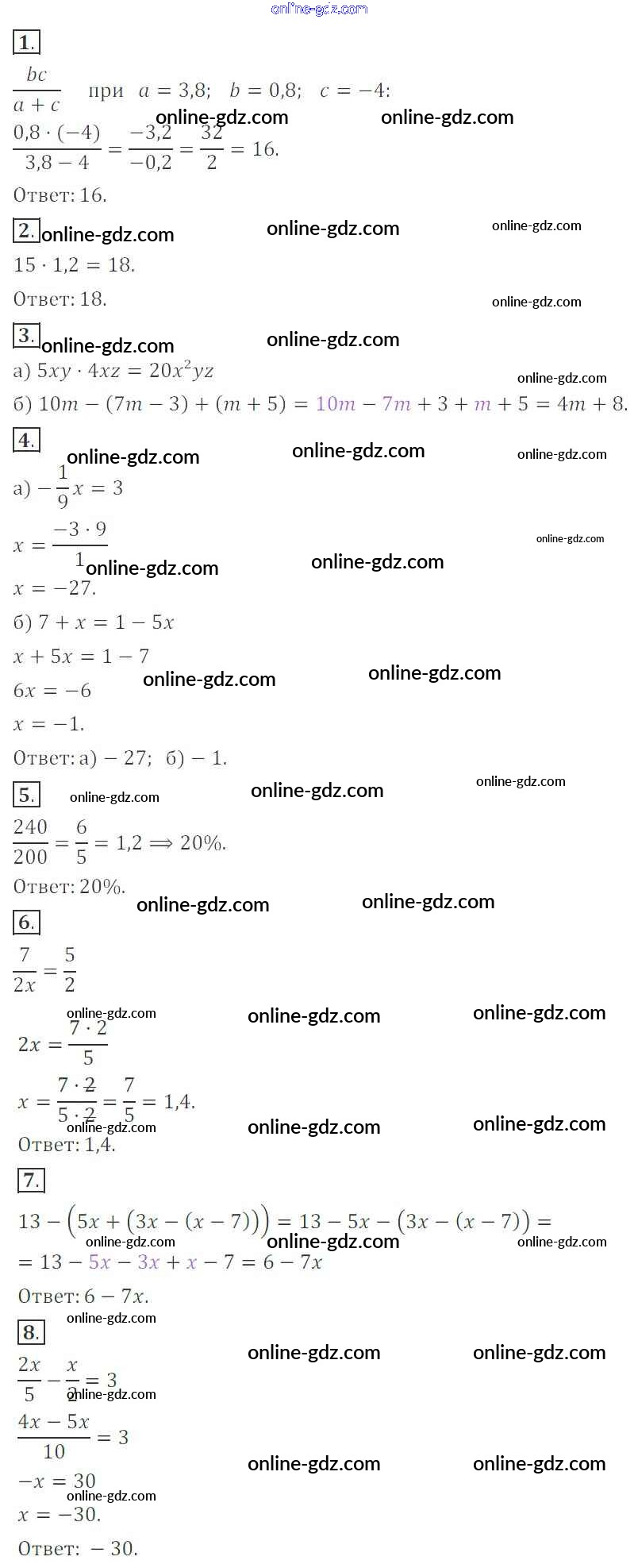 Готовые домашние задания по Алгебре за 7 класс Контрольные работы Кузнецова, Минаева 2018 - Контрольная работа №10. Итоговая работа за I полугодие Вариант 3