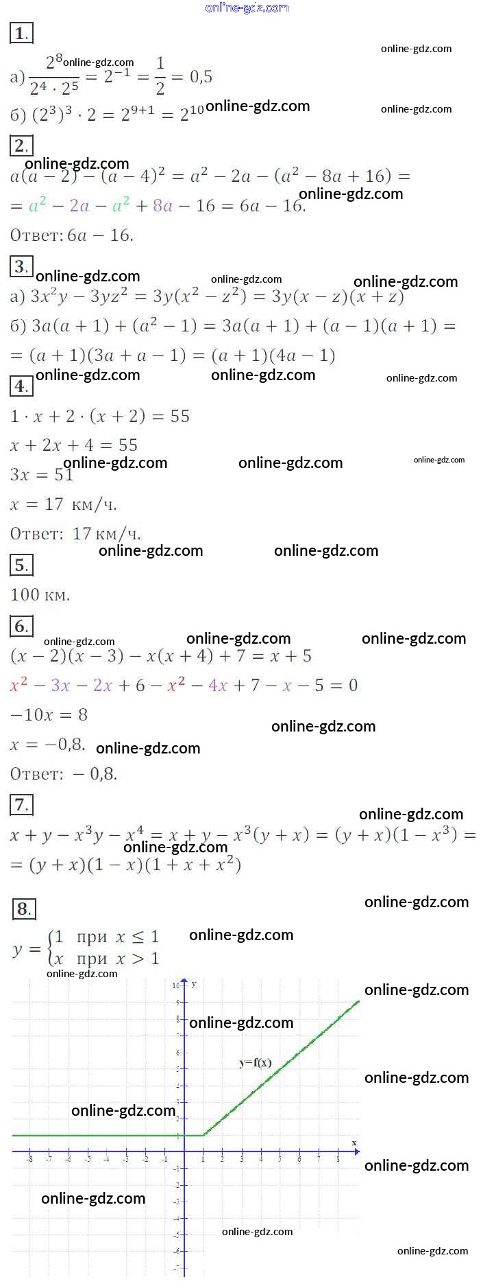 Готовые домашние задания по Алгебре за 7 класс Контрольные работы Кузнецова, Минаева 2018 - Контрольная работа №11. Итоговая контрольная за курс 7 класса Вариант 2