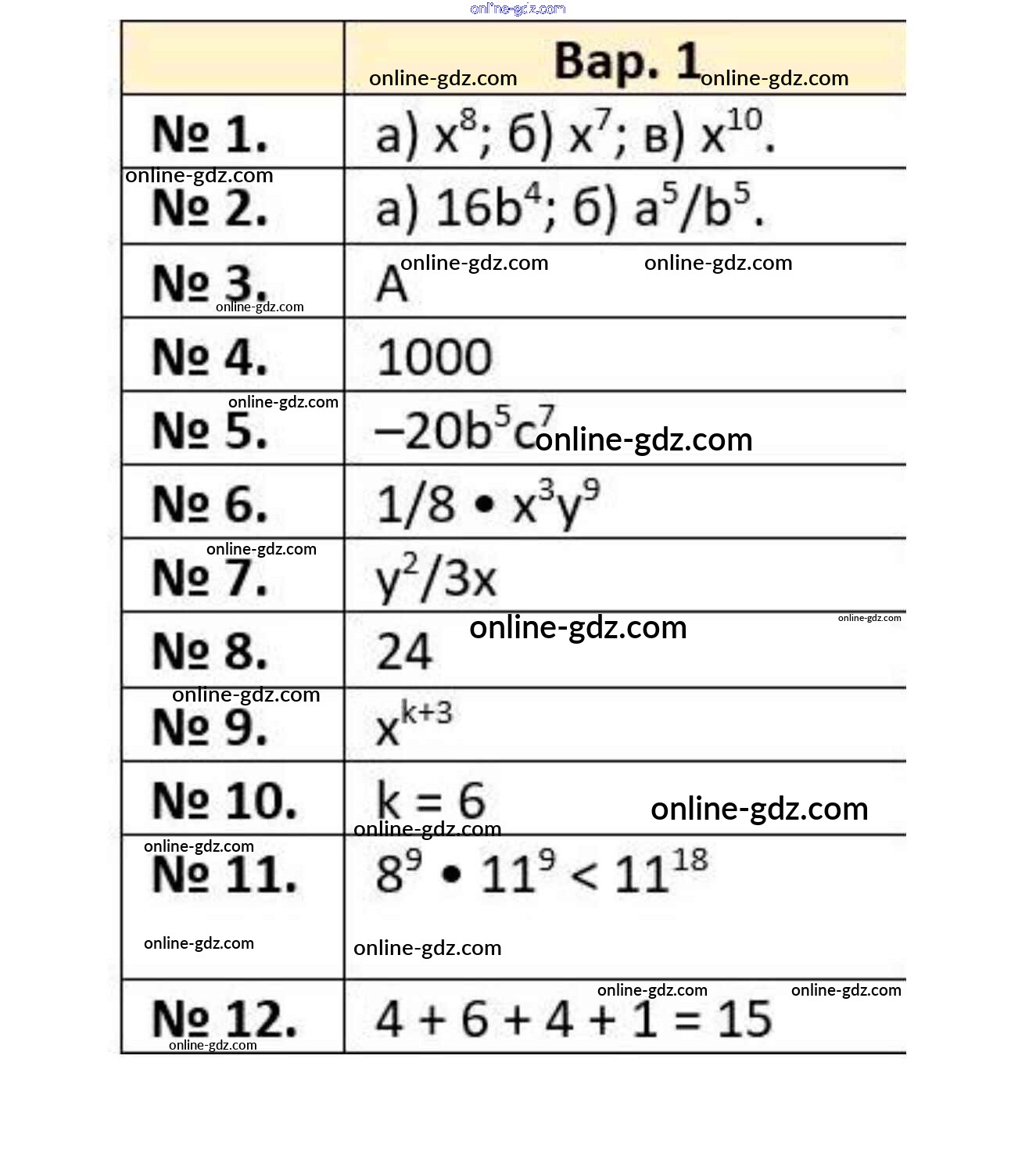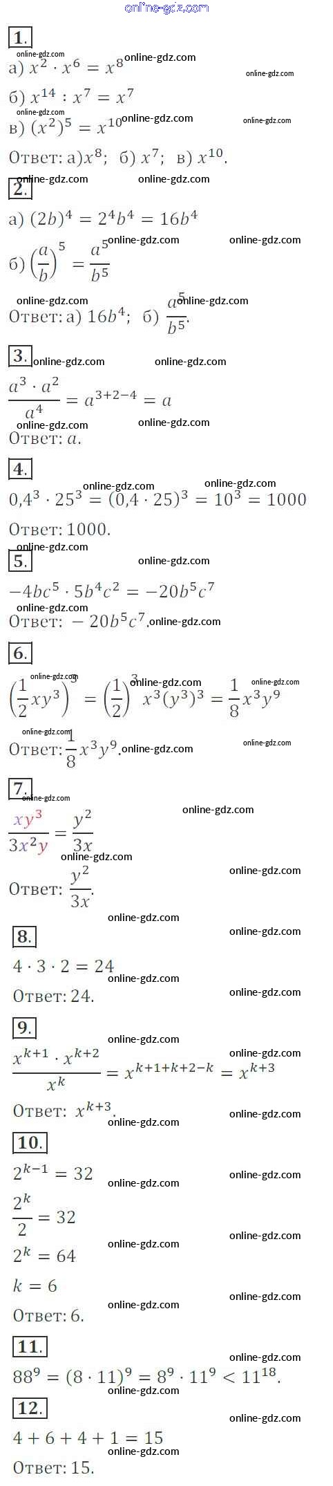 Готовые домашние задания по Алгебре за 7 класс Контрольные работы Кузнецова, Минаева 2018 - Контрольная работа №6. Свойства степени с натуральным показателем Вариант 1