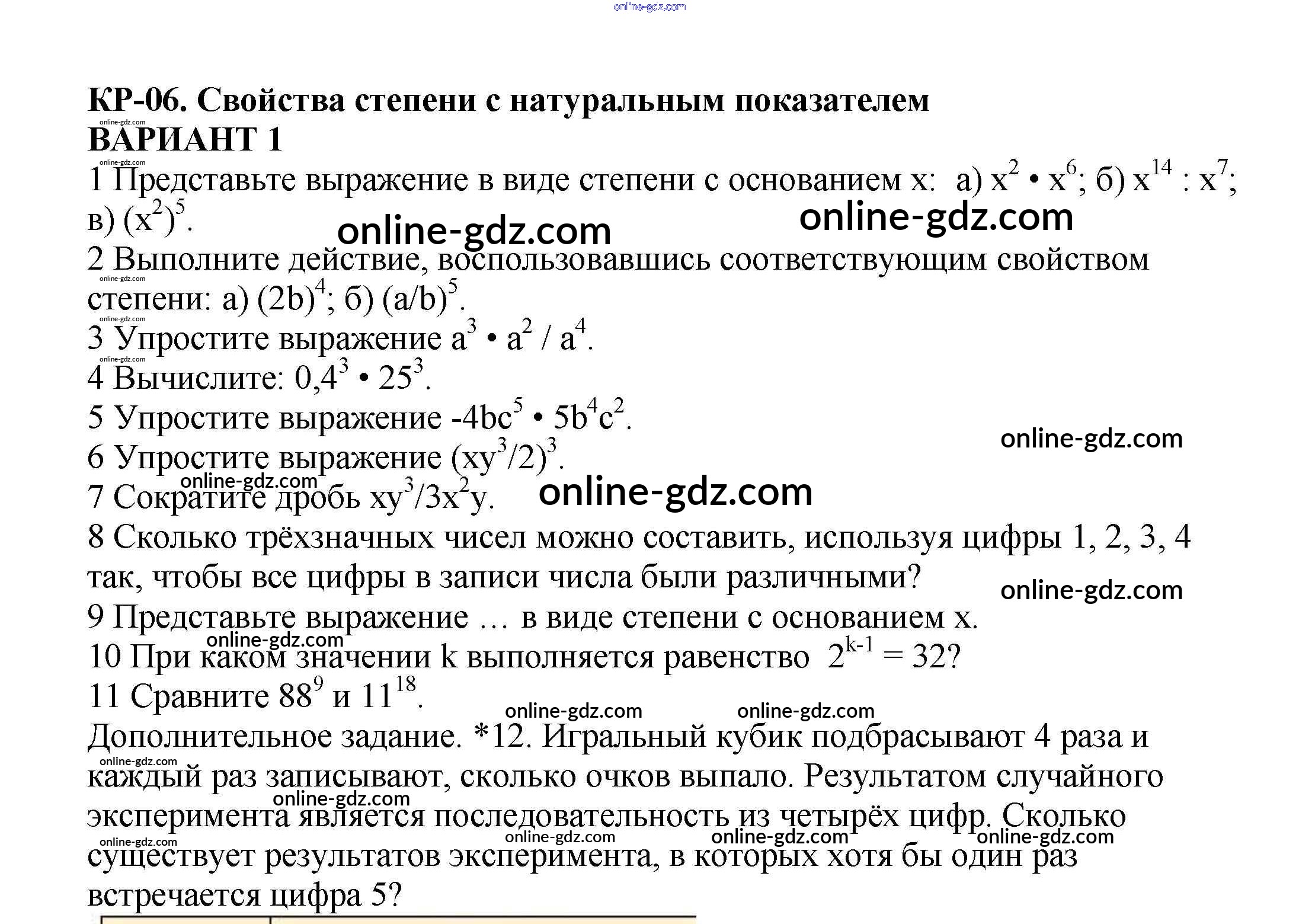 класс, от простых до сложных. Мы стремимся предоставить нашим пользователям максимально точные и полезные ответы к Контрольным работам Кузнецова, Минаева - Контрольная работа №6. Свойства степени с натуральным показателем Вариант 1, поэтому мы постоянно работаем над улучшением нашего контента. Мы всегда готовы помочь!