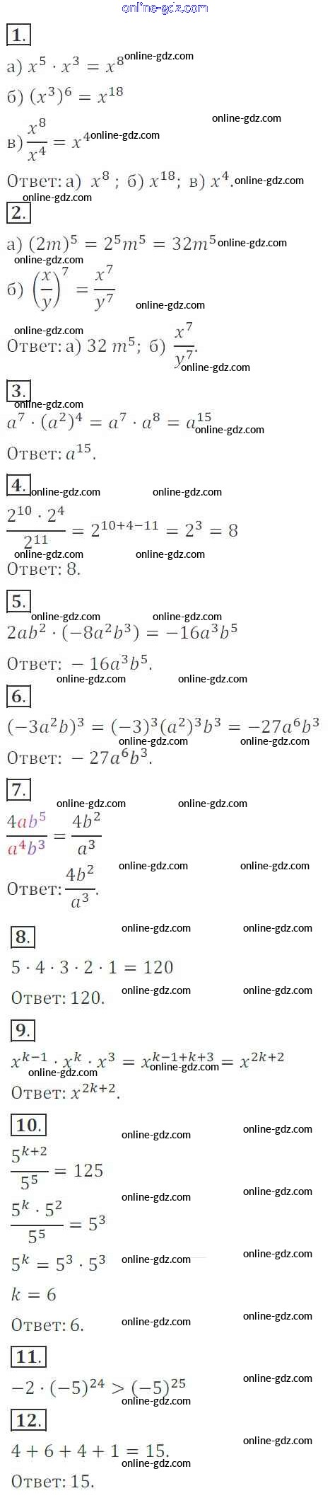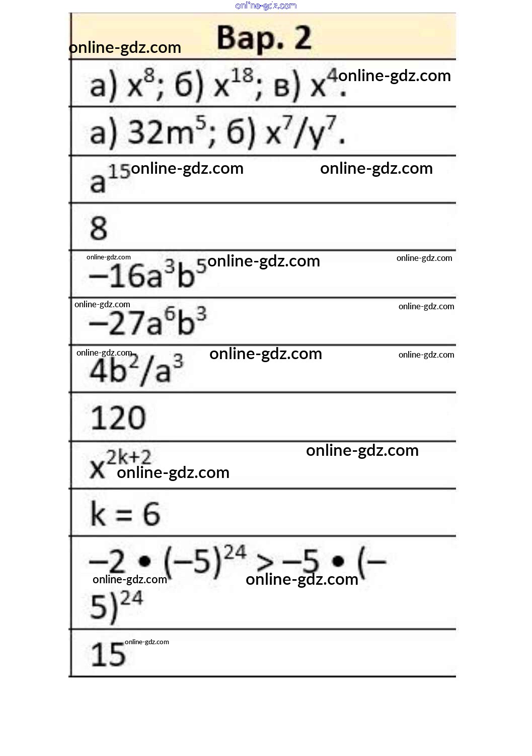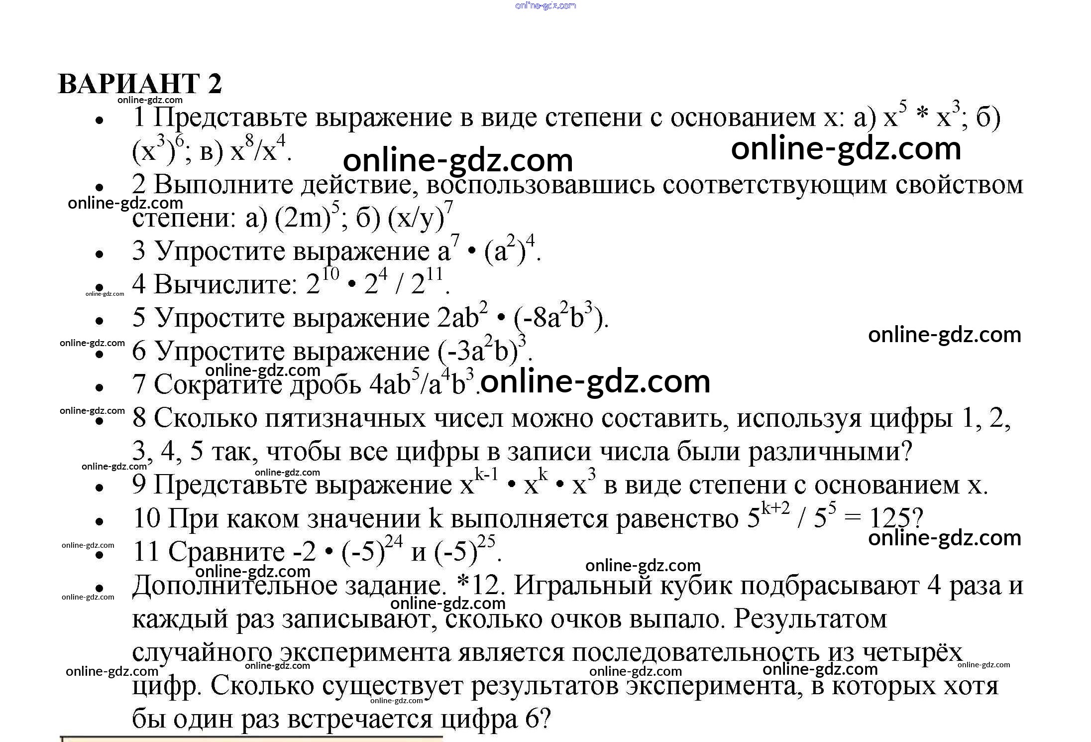 Готовые домашние задания по Алгебре за 7 класс Контрольные работы Кузнецова, Минаева 2018 - Контрольная работа №6. Свойства степени с натуральным показателем Вариант 2
