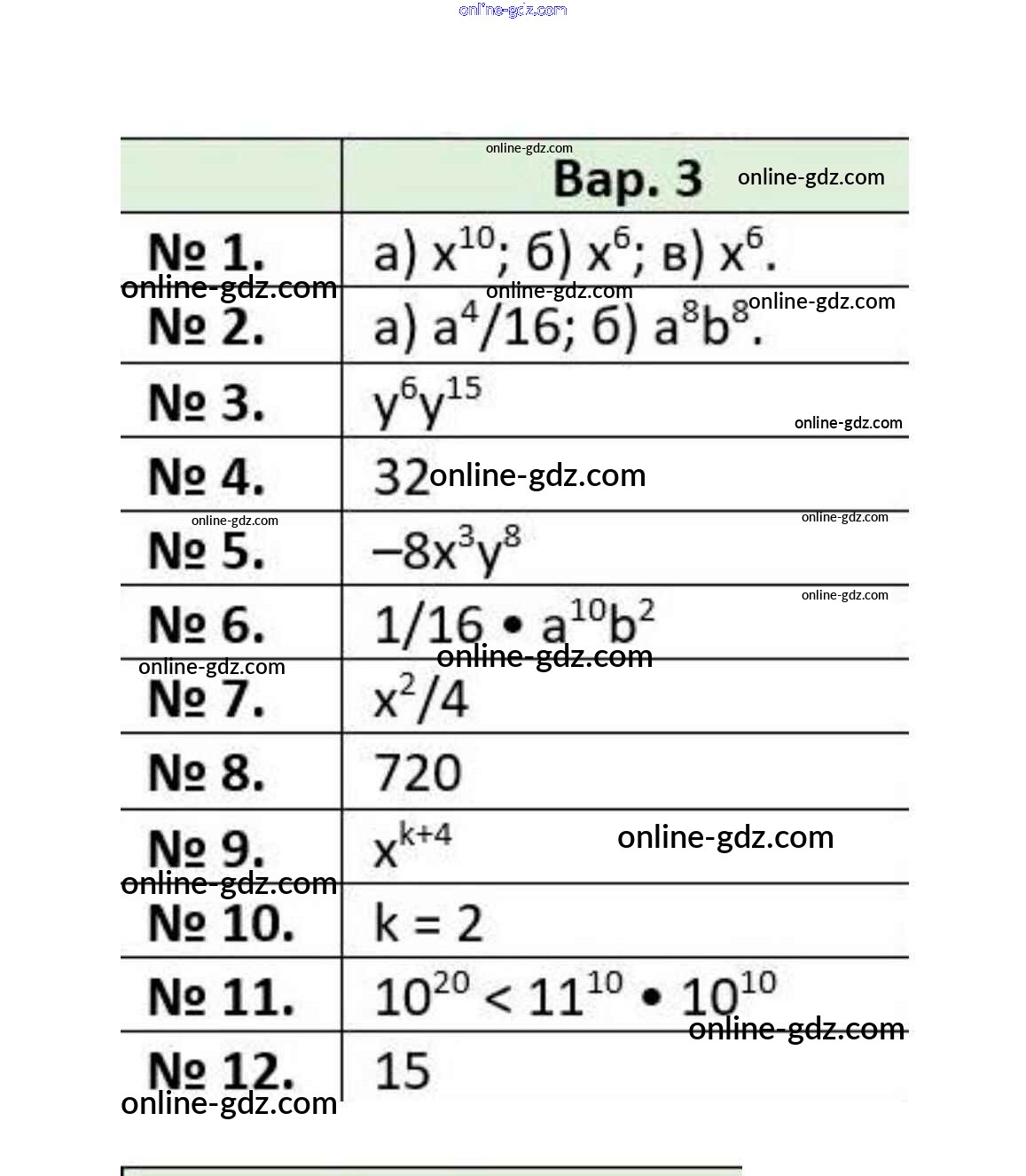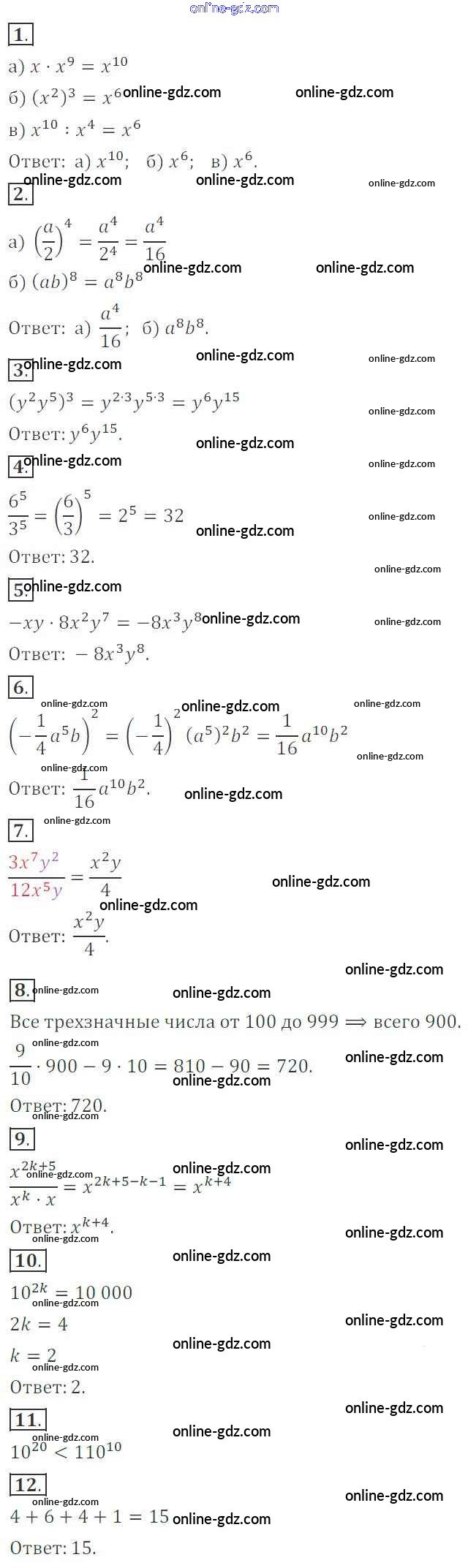 Готовые домашние задания по Алгебре за 7 класс Контрольные работы Кузнецова, Минаева 2018 - Контрольная работа №6. Свойства степени с натуральным показателем Вариант 3