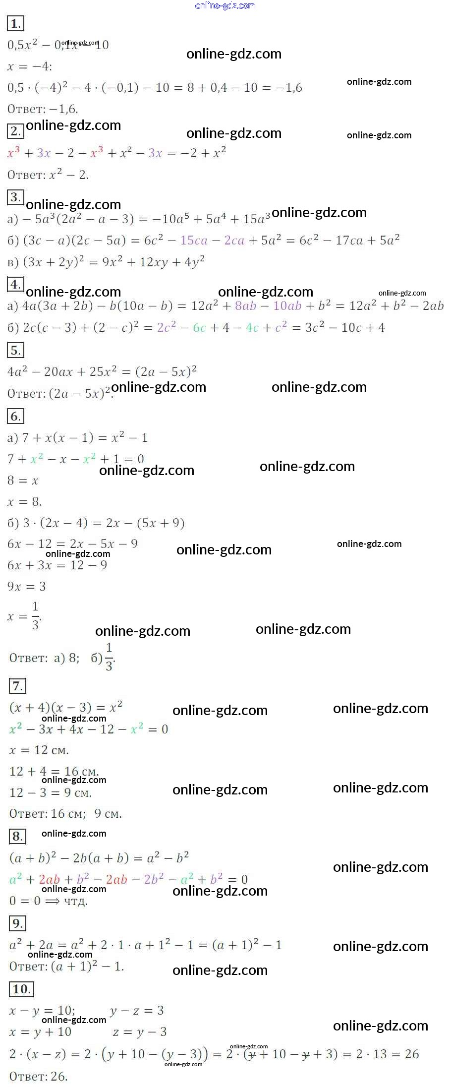 Готовые домашние задания по Алгебре за 7 класс Контрольные работы Кузнецова, Минаева 2018 - Контрольная работа №7. Многочлены Вариант 2