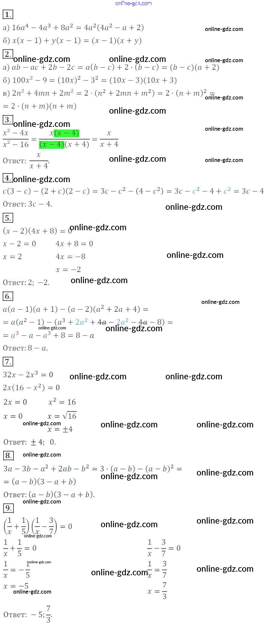 Готовые домашние задания по Алгебре за 7 класс Контрольные работы Кузнецова, Минаева 2018 - Контрольная работа №8. Разложение многочленов на множители Вариант 3