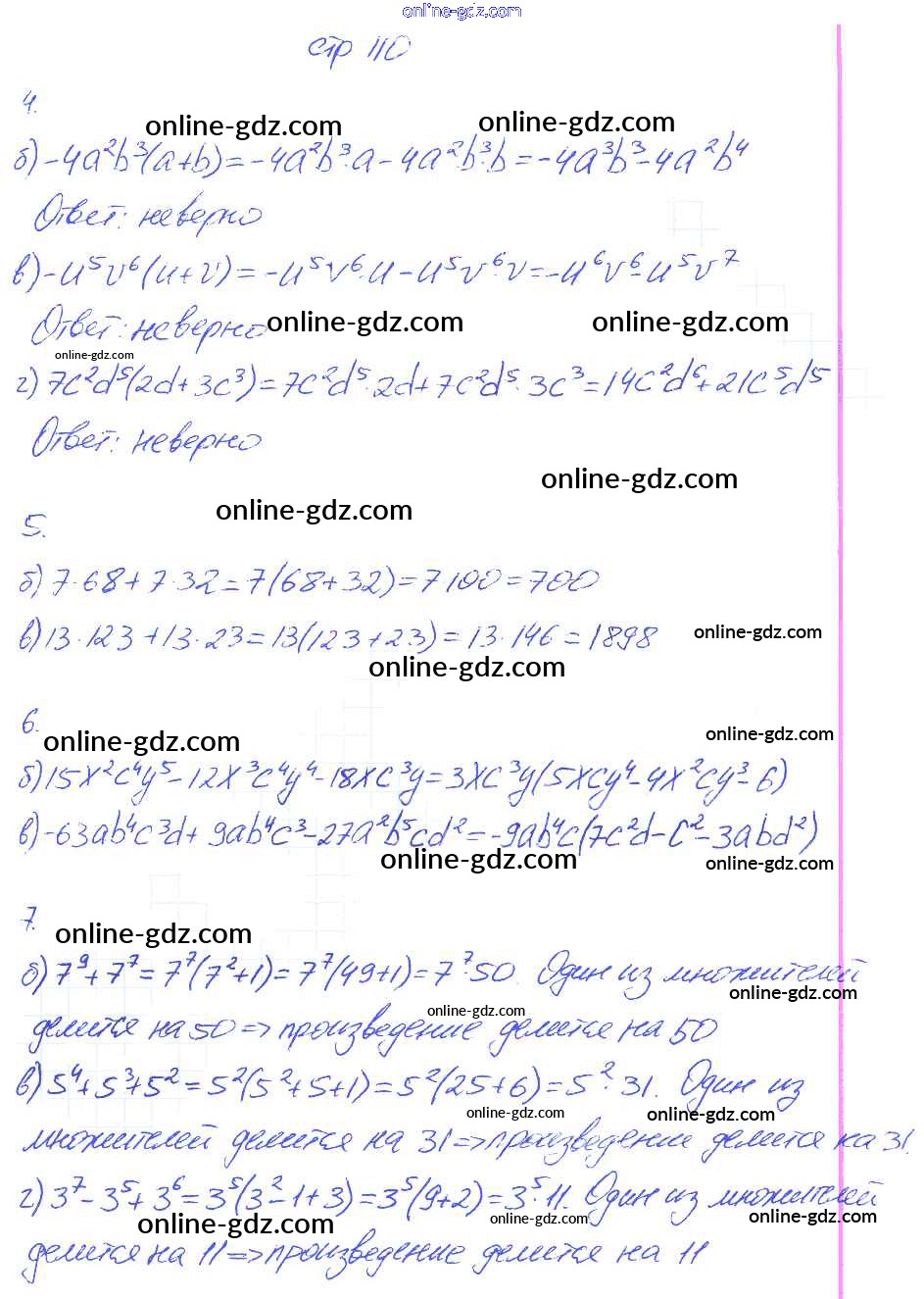 Готовые домашние задания по Алгебре за 7 класс Рабочая тетрадь Ключникова, Комиссарова УМК 2013 - Страницы 110