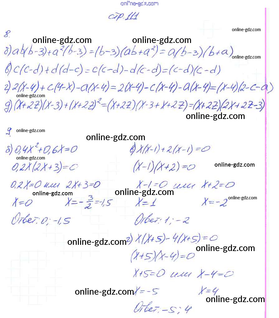 Готовые домашние задания по Алгебре за 7 класс Рабочая тетрадь Ключникова, Комиссарова УМК 2013 - Страницы 111