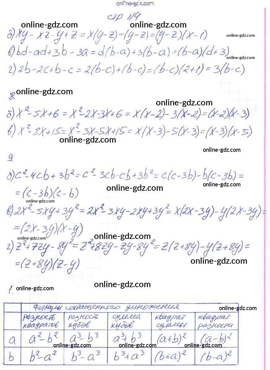 Готовые домашние задания по Алгебре за 7 класс Рабочая тетрадь Ключникова, Комиссарова УМК 2013 - Страницы 114