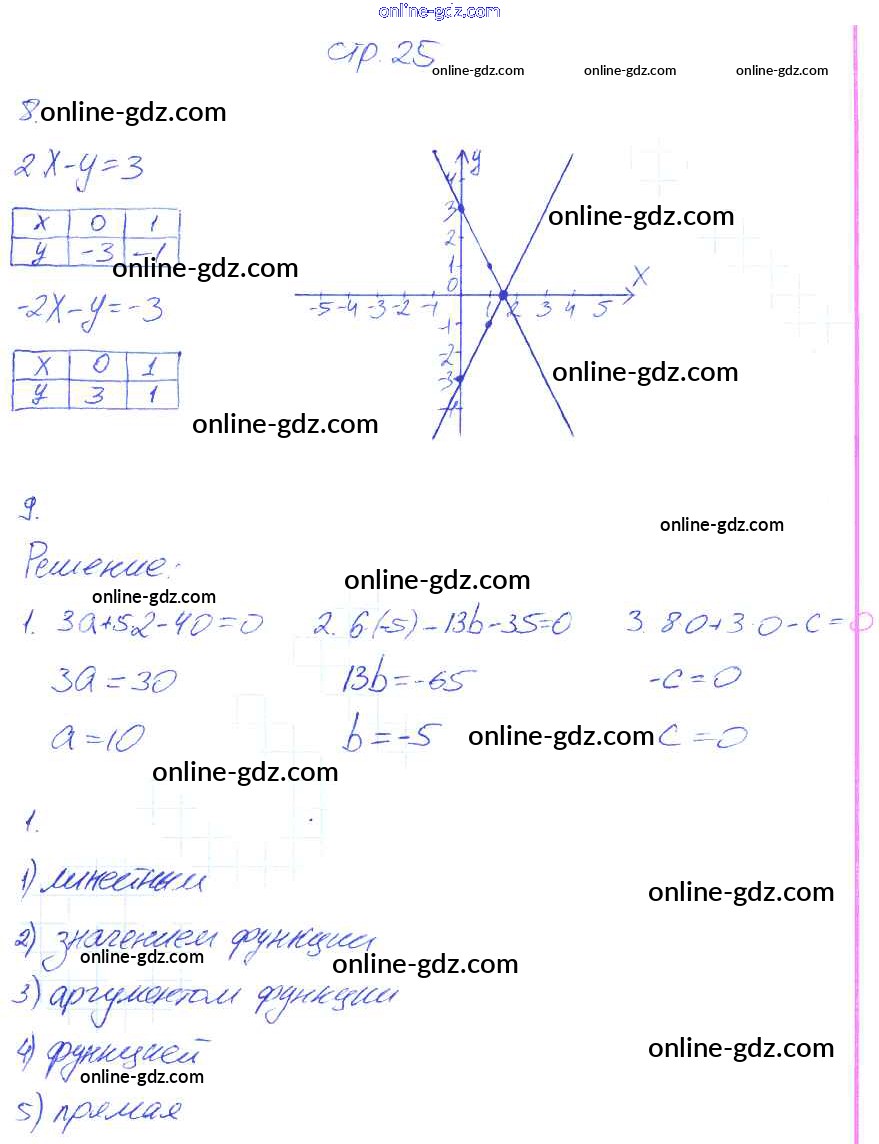 Готовые домашние задания по Алгебре за 7 класс Рабочая тетрадь Ключникова, Комиссарова УМК 2013 - Страницы 25