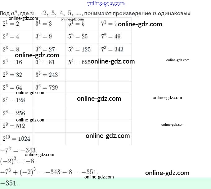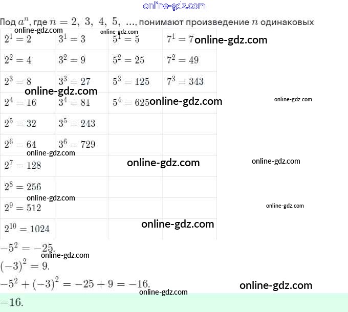 Готовые домашние задания по Алгебре за 7 класс Рабочая тетрадь Ключникова, Комиссарова УМК 2013 - §16. Таблицы основных степеней 8