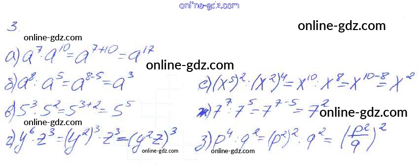 Готовые домашние задания по Алгебре за 7 класс Рабочая тетрадь Ключникова, Комиссарова УМК 2013 - §17. Свойства степени с натуральным показателем 3