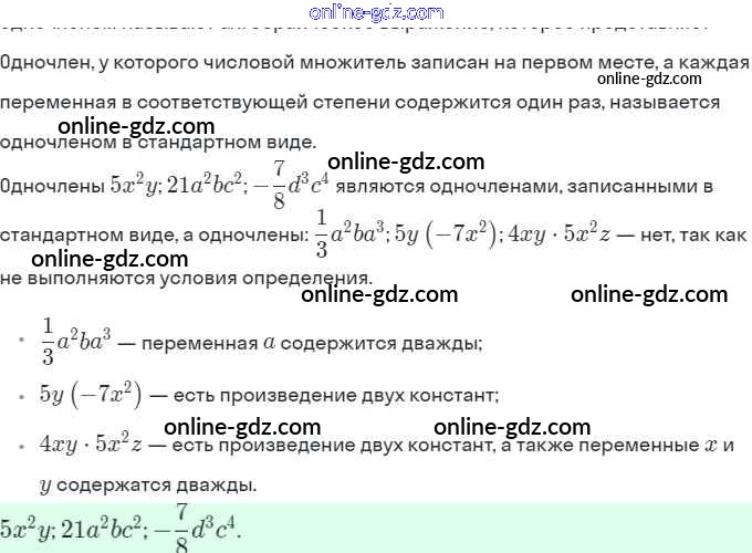 Готовые домашние задания по Алгебре за 7 класс Рабочая тетрадь Ключникова, Комиссарова УМК 2013 - §20. Понятие одночлена. Стандартный вид одночлена 3