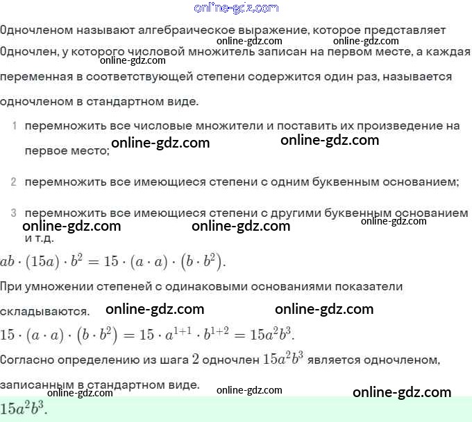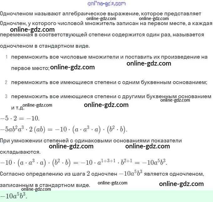 Готовые домашние задания по Алгебре за 7 класс Рабочая тетрадь Ключникова, Комиссарова УМК 2013 - §20. Понятие одночлена. Стандартный вид одночлена 4