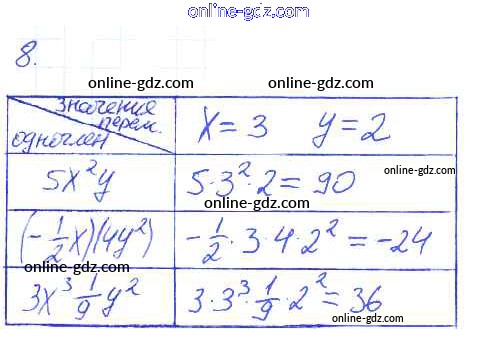 Готовые домашние задания по Алгебре за 7 класс Рабочая тетрадь Ключникова, Комиссарова УМК 2013 - §20. Понятие одночлена. Стандартный вид одночлена 8
