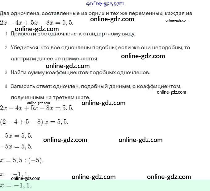 Готовые домашние задания по Алгебре за 7 класс Рабочая тетрадь Ключникова, Комиссарова УМК 2013 - §21. Сложение и вычитание одночленов 11