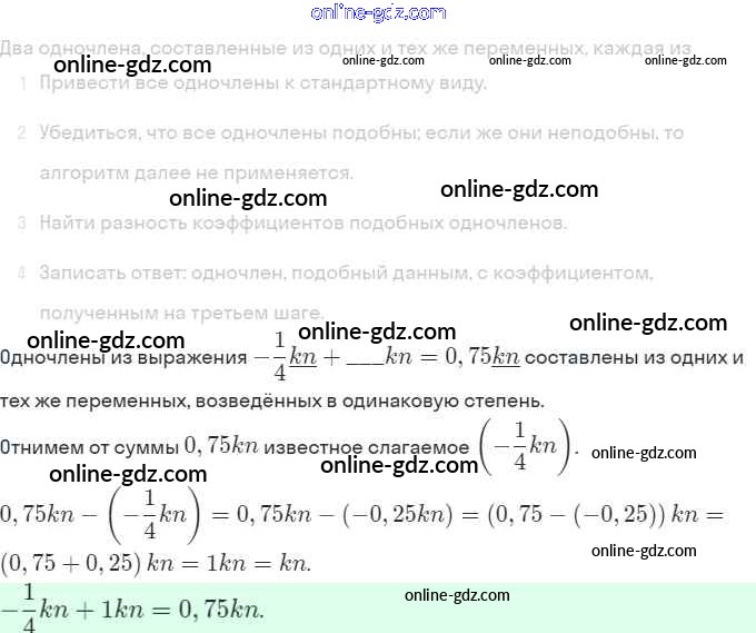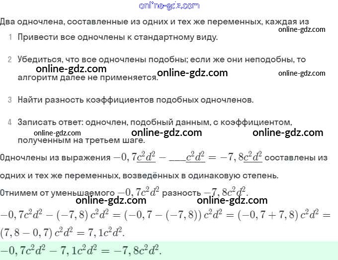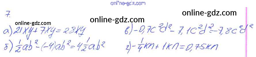 Готовые домашние задания по Алгебре за 7 класс Рабочая тетрадь Ключникова, Комиссарова УМК 2013 - §21. Сложение и вычитание одночленов 7