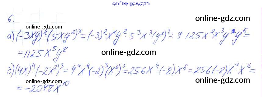 Готовые домашние задания по Алгебре за 7 класс Рабочая тетрадь Ключникова, Комиссарова УМК 2013 - §22. Умножение одночленов. Возведение в натуральную степень 6