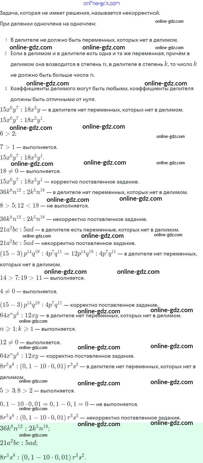 §23. Деление одночлена на одночлен