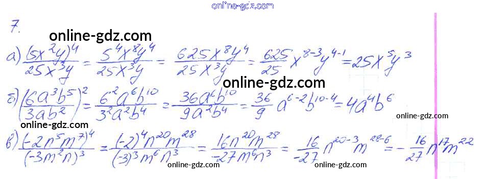 Готовые домашние задания по Алгебре за 7 класс Рабочая тетрадь Ключникова, Комиссарова УМК 2013 - §23. Деление одночлена на одночлен 7