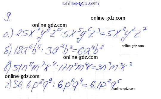 Готовые домашние задания по Алгебре за 7 класс Рабочая тетрадь Ключникова, Комиссарова УМК 2013 - §23. Деление одночлена на одночлен 9
