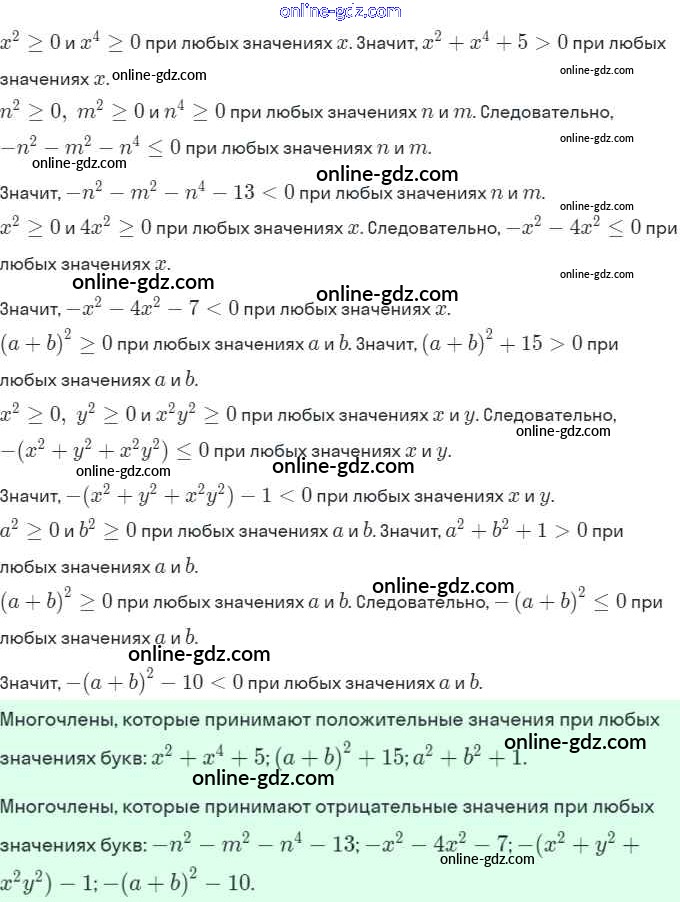 Готовые домашние задания по Алгебре за 7 класс Рабочая тетрадь Ключникова, Комиссарова УМК 2013 - §24. Многочлены. Основные понятия 10