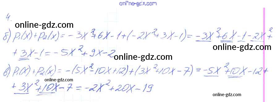 Готовые домашние задания по Алгебре за 7 класс Рабочая тетрадь Ключникова, Комиссарова УМК 2013 - §25. Сложение и вычитание многочленов 4