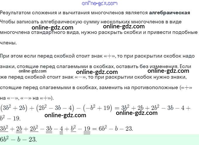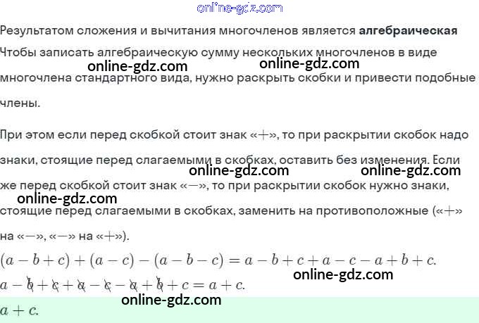 Готовые домашние задания по Алгебре за 7 класс Рабочая тетрадь Ключникова, Комиссарова УМК 2013 - §25. Сложение и вычитание многочленов 7
