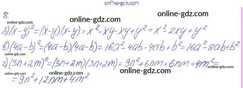 Готовые домашние задания по Алгебре за 7 класс Рабочая тетрадь Ключникова, Комиссарова УМК 2013 - §27. Умножение многочлена на многочлен 8