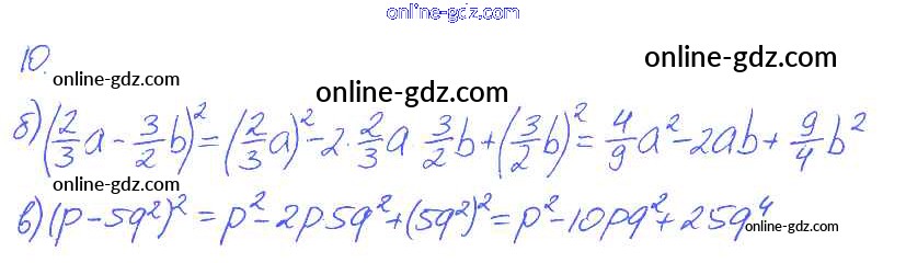 Готовые домашние задания по Алгебре за 7 класс Рабочая тетрадь Ключникова, Комиссарова УМК 2013 - §28. Формулы сокращенного умножения 10