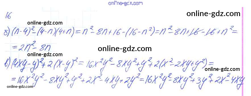 Готовые домашние задания по Алгебре за 7 класс Рабочая тетрадь Ключникова, Комиссарова УМК 2013 - §28. Формулы сокращенного умножения 16