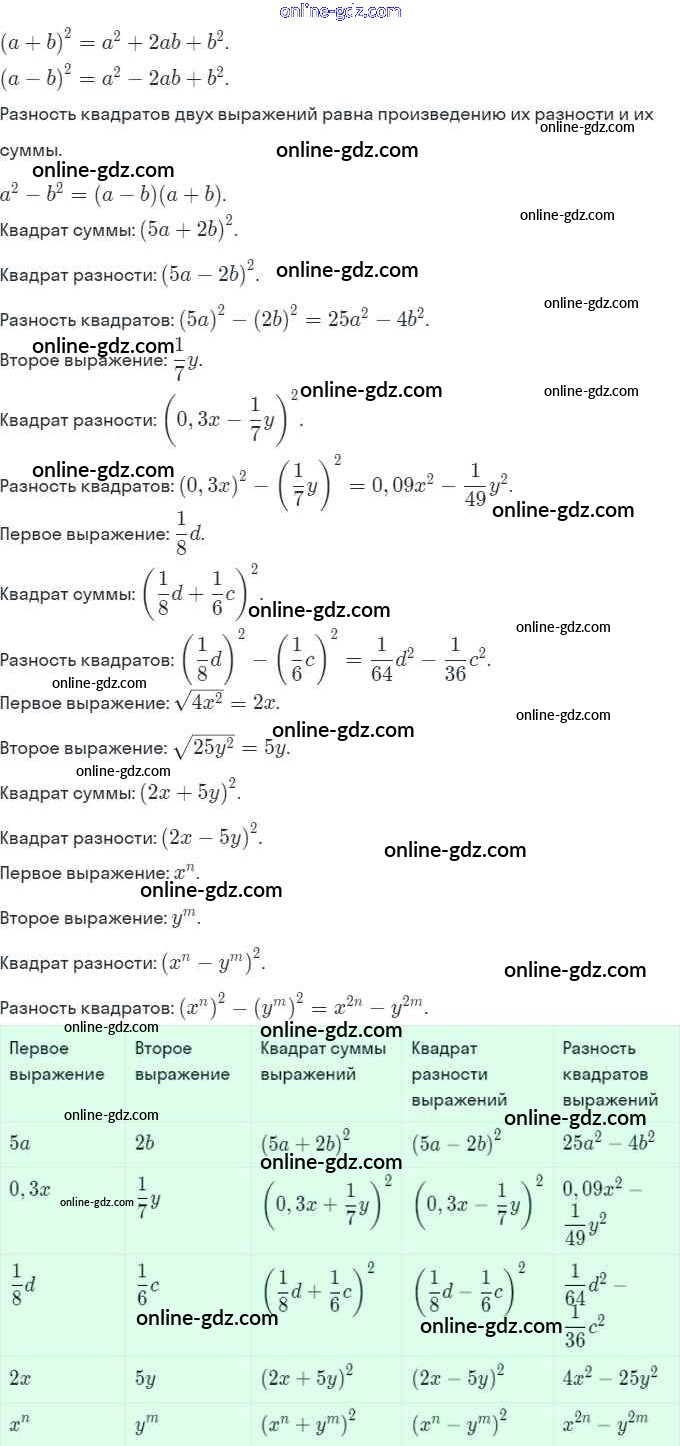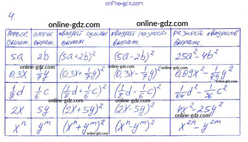 Готовые домашние задания по Алгебре за 7 класс Рабочая тетрадь Ключникова, Комиссарова УМК 2013 - §28. Формулы сокращенного умножения 4