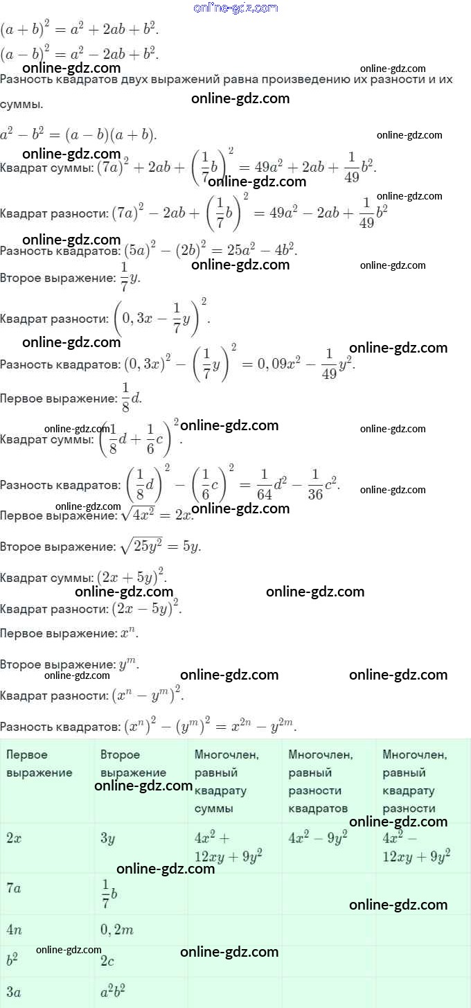 Готовые домашние задания по Алгебре за 7 класс Рабочая тетрадь Ключникова, Комиссарова УМК 2013 - §28. Формулы сокращенного умножения 5