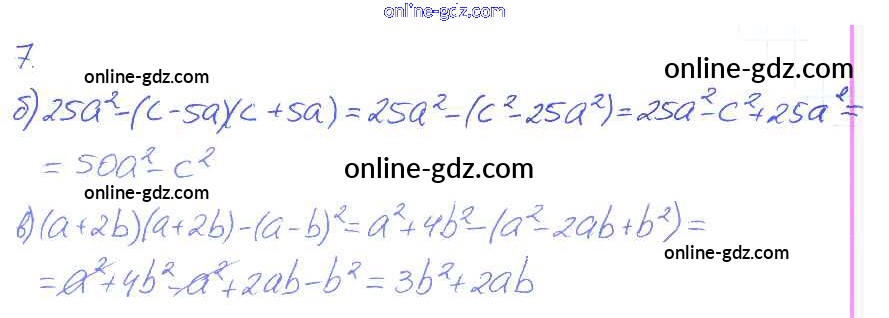Готовые домашние задания по Алгебре за 7 класс Рабочая тетрадь Ключникова, Комиссарова УМК 2013 - §28. Формулы сокращенного умножения 7