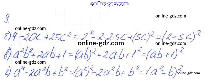 Готовые домашние задания по Алгебре за 7 класс Рабочая тетрадь Ключникова, Комиссарова УМК 2013 - §28. Формулы сокращенного умножения 9