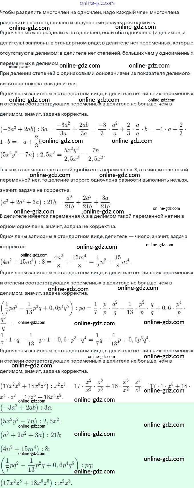 §29. Деление многочлена на одночлен