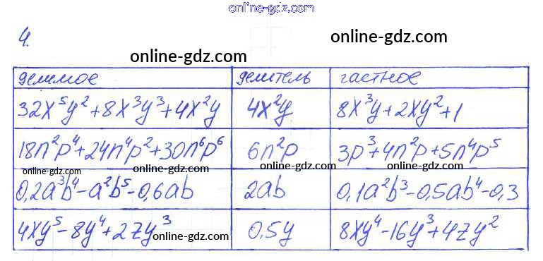 Готовые домашние задания по Алгебре за 7 класс Рабочая тетрадь Ключникова, Комиссарова УМК 2013 - §29. Деление многочлена на одночлен 4