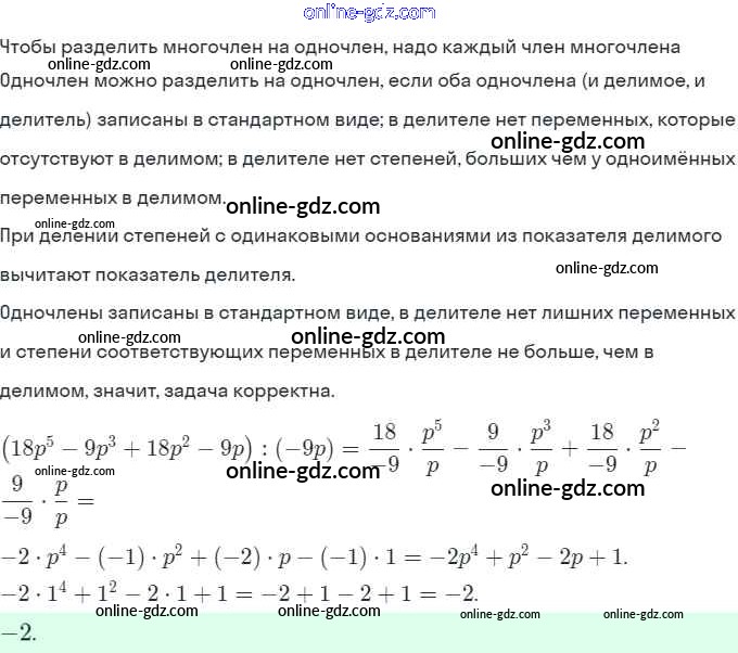 Готовые домашние задания по Алгебре за 7 класс Рабочая тетрадь Ключникова, Комиссарова УМК 2013 - §29. Деление многочлена на одночлен 5