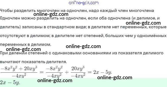 Готовые домашние задания по Алгебре за 7 класс Рабочая тетрадь Ключникова, Комиссарова УМК 2013 - §29. Деление многочлена на одночлен 7