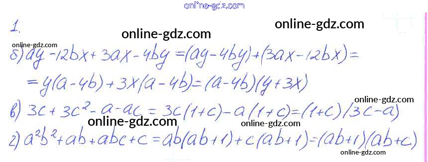 Готовые домашние задания по Алгебре за 7 класс Рабочая тетрадь Ключникова, Комиссарова УМК 2013 - §32. Способ группировки 1