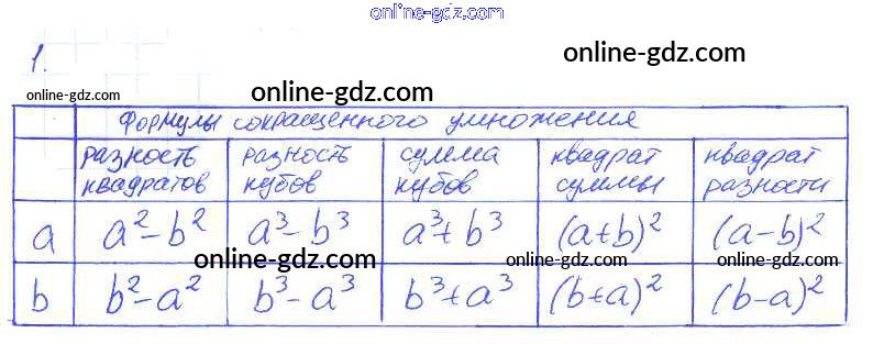 Готовые домашние задания по Алгебре за 7 класс Рабочая тетрадь Ключникова, Комиссарова УМК 2013 - §33. Разложение многочленов на множители с помощью формул сокращенного умножения 1