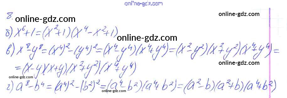Готовые домашние задания по Алгебре за 7 класс Рабочая тетрадь Ключникова, Комиссарова УМК 2013 - §34. Разложение многочленов на множители с помощью комбинации различных приемов 8