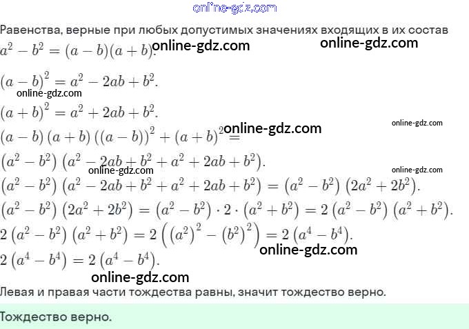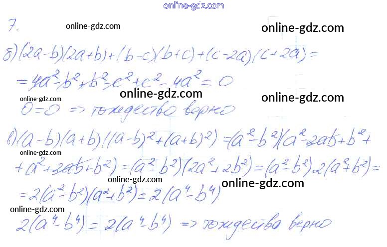 Готовые домашние задания по Алгебре за 7 класс Рабочая тетрадь Ключникова, Комиссарова УМК 2013 - §36. Тождества 7