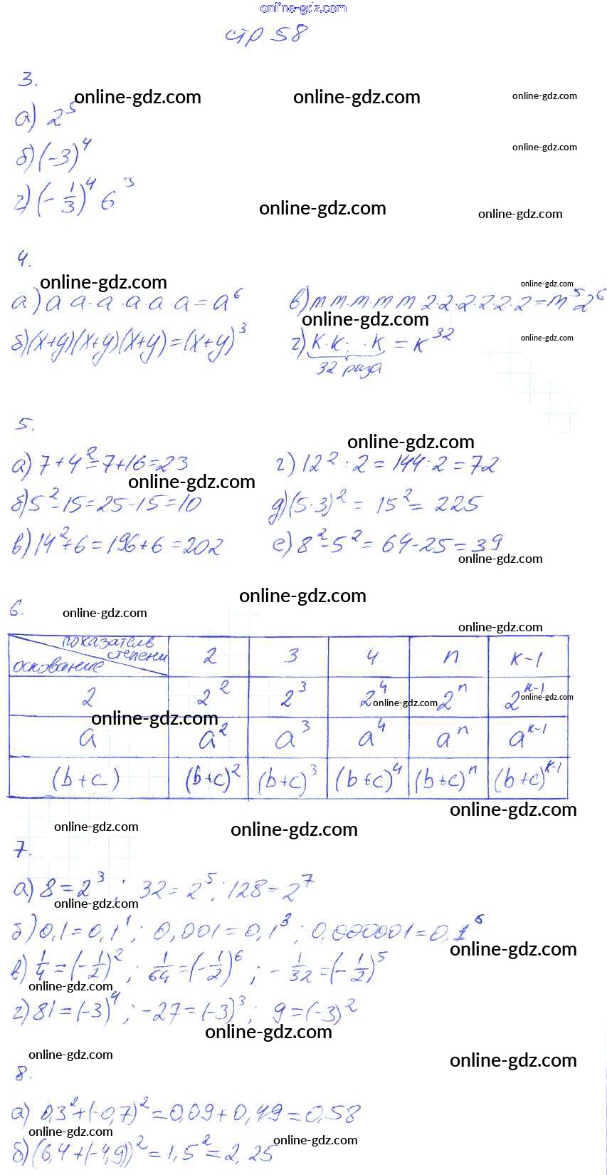Готовые домашние задания по Алгебре за 7 класс Рабочая тетрадь Ключникова, Комиссарова УМК 2013 - Страницы 58