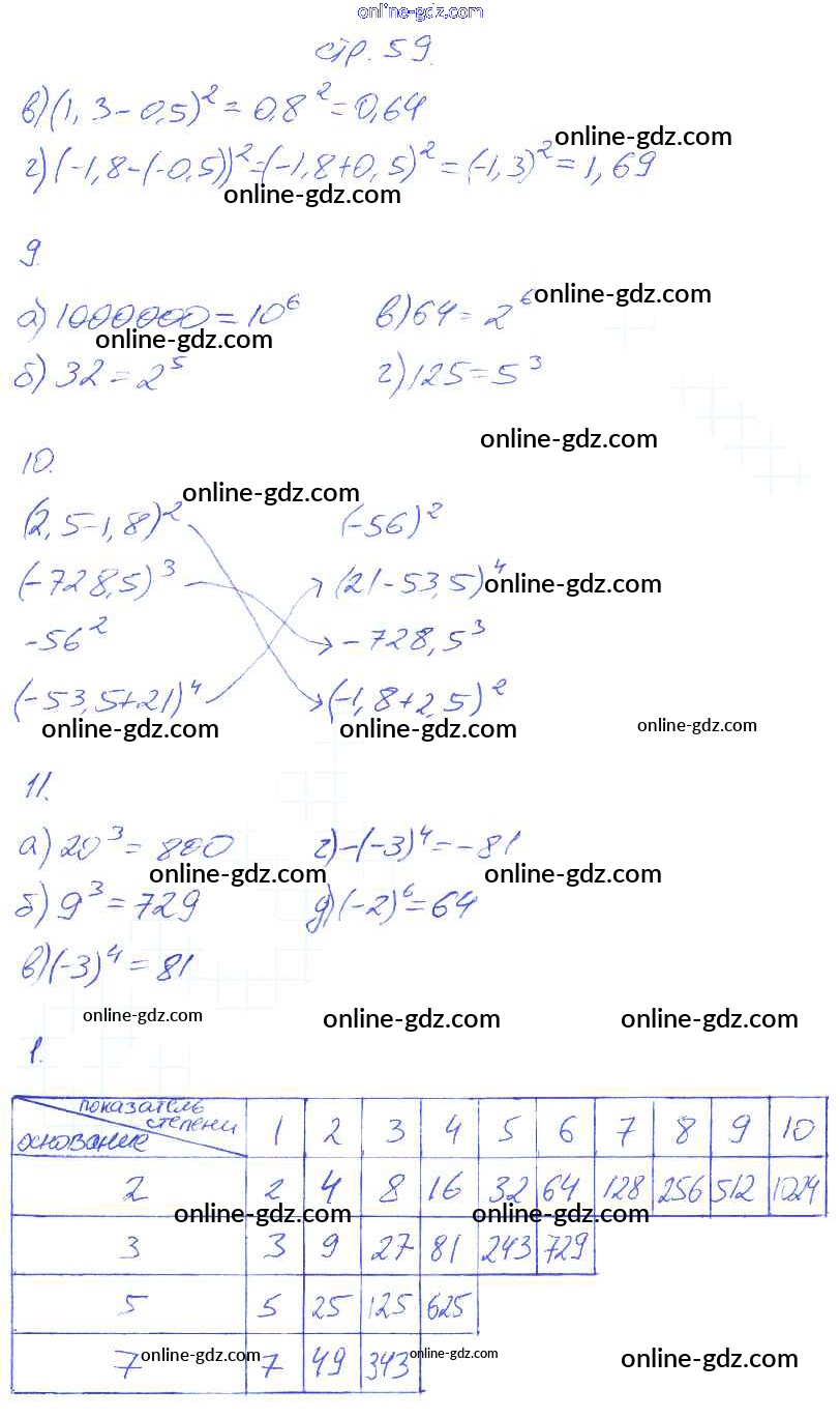 Готовые домашние задания по Алгебре за 7 класс Рабочая тетрадь Ключникова, Комиссарова УМК 2013 - Страницы 59