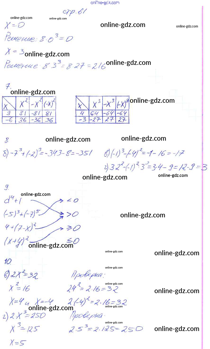 Готовые домашние задания по Алгебре за 7 класс Рабочая тетрадь Ключникова, Комиссарова УМК 2013 - Страницы 61
