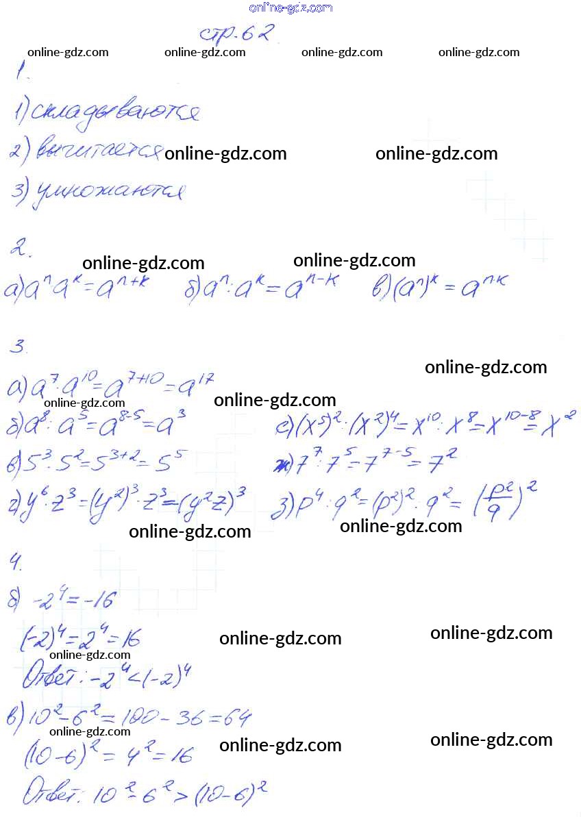Готовые домашние задания по Алгебре за 7 класс Рабочая тетрадь Ключникова, Комиссарова УМК 2013 - Страницы 62