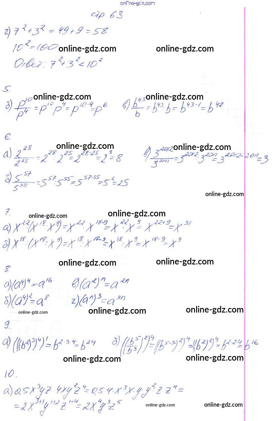 Готовые домашние задания по Алгебре за 7 класс Рабочая тетрадь Ключникова, Комиссарова УМК 2013 - Страницы 63