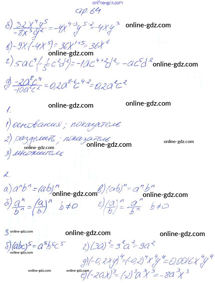 Готовые домашние задания по Алгебре за 7 класс Рабочая тетрадь Ключникова, Комиссарова УМК 2013 - Страницы 64