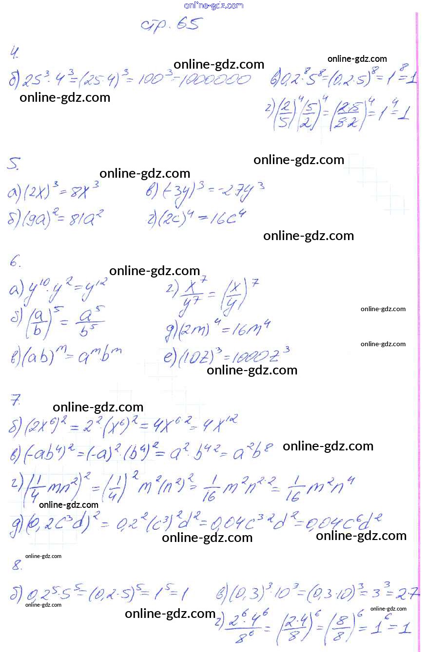Готовые домашние задания по Алгебре за 7 класс Рабочая тетрадь Ключникова, Комиссарова УМК 2013 - Страницы 65