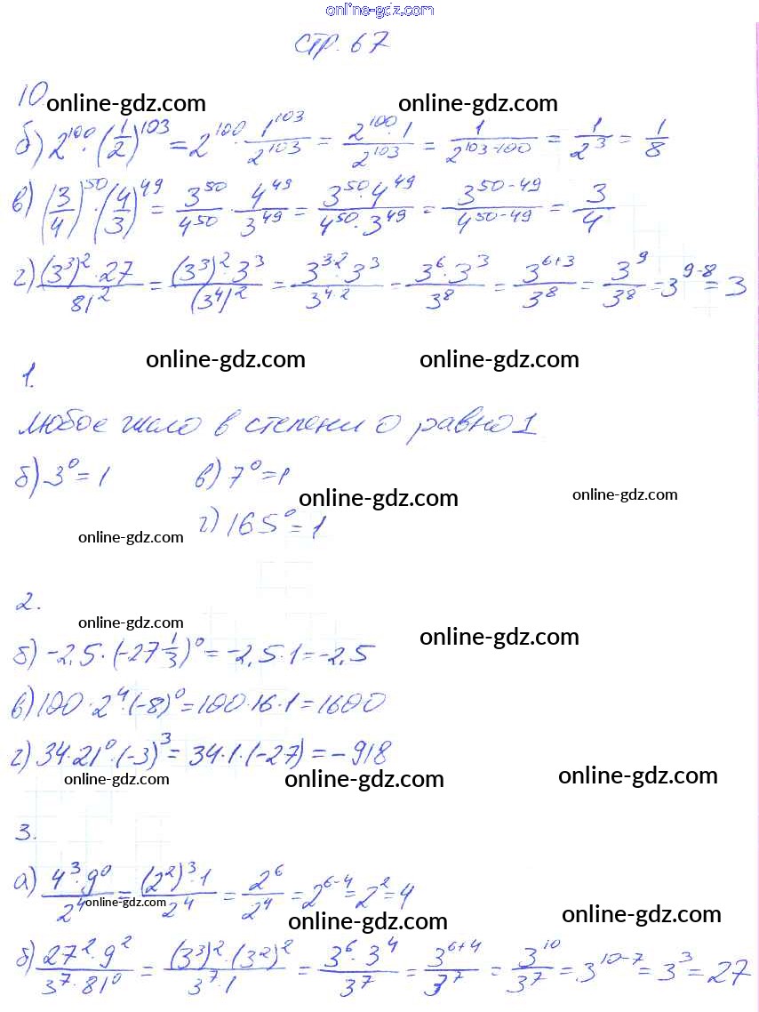 Готовые домашние задания по Алгебре за 7 класс Рабочая тетрадь Ключникова, Комиссарова УМК 2013 - Страницы 67