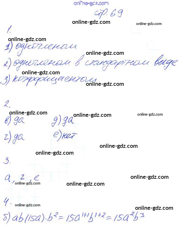 Готовые домашние задания по Алгебре за 7 класс Рабочая тетрадь Ключникова, Комиссарова УМК 2013 - Страницы 69